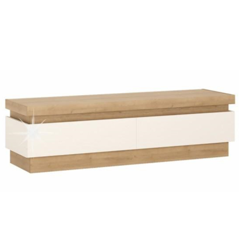 RTV asztal 01, tölgy riviéra/fehér extra magasfényű, LEONARDO