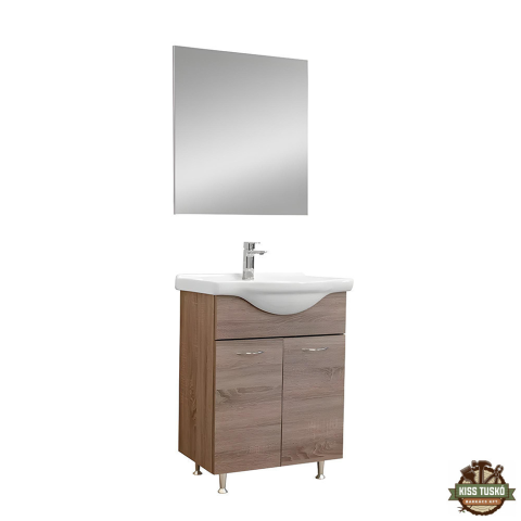 Ruben Prime 65 komplett Leziter Ruben Prime 65 komplett fürdőszobabútor CUBE tükörrel – rauna szil• Kivitel: álló alsószekrény + kerámia mosdó + különálló CUBE tükör• Alsó szekrény mérete: 71,5 × 62 × 33 cm• Anyag: bútorlap, krómozott fogantyúkkal• Bel