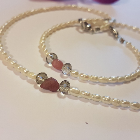 Mutatós és elegáns édesvízi gyöngysor, 0.4 cm-es természetes drágakővel díszítve. Apró, finom ékszerek kedvelőinek ajánlom.Szélesség: 0,2 cmHosszúság: 43 cm