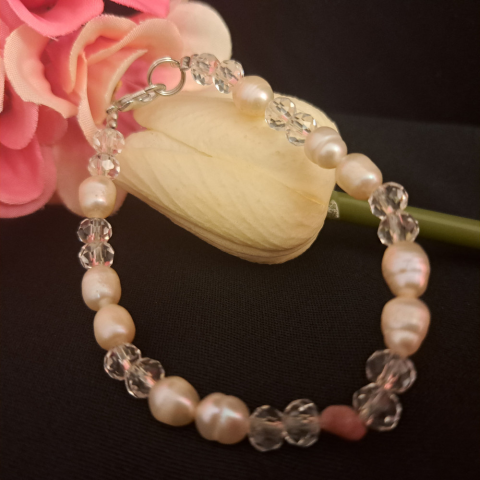 1 kép Rubin, igazgyöngy és kristály karkötő.
