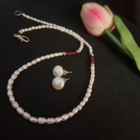 1 kép Rubin kővel díszített tenyésztett gyöngy észett