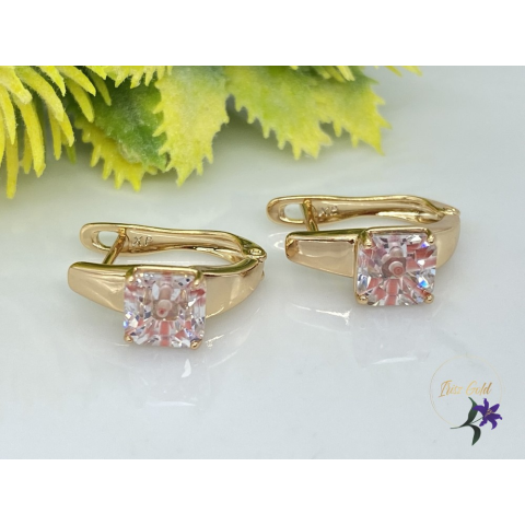 1 kép Rubina gold antiallergén köves fülbevaló szögletes kővel 18K - rózsaszín
