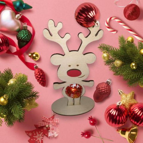 8x4 cm talpon álló szarvas. kb 13x6 cm, a lyuk kb 3cm. Egy Lindt csokigolyó fér bele. Jól meg kell nyomni a csokit és a helyén marad. Fa rétegelt lemezből készült a dísz, lézervágással. A talpra szöveg gravírozható!