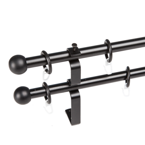 1 kép Rúdkarnis fém dupla fekete D=16 mm 160 cm (tartozékokkal)
