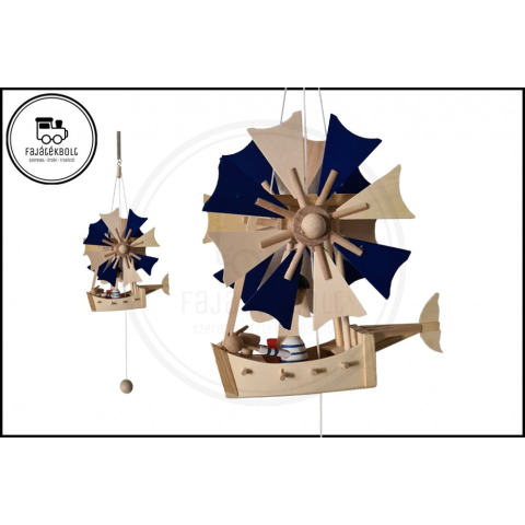Fa rugós figura Felakasztható, meghúzva fel-le mozog, forog a propellere Anyaga: Fa Mérete: Hosszúság: 80 cm Szélesség: 19 cm Magasság: 10 cm Tisztítása: száraz törlőkendővel Ajánlott korosztály: 5-7 éves kortól