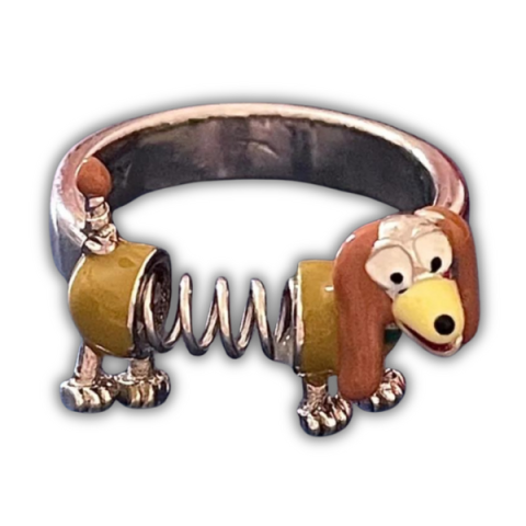 Tacskós gyűrű rugós kialakítással, állítható mérettel. Különleges ajándék tacskó rajongóknak, stílusos kiegészítő minden alkalomra