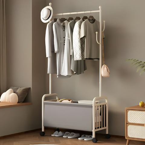 Ruhaállvány akasztóval, cipőrekesszel, kerekekkel, fehér, 80 x 37 x 168 cm bútor termékleírás
