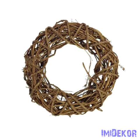 Fém váz alapú, masszív, barna indákkal körbetekert koszorú. Egzotikus és látványos koszorúalap, ami könnyedén díszíthető és beleillik a tavasztól őszig tartó összes szezonális dekorációba. Méret: átmérő: 24cm, vast.: kb.80mm