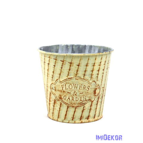 Rusztikus csíkos bádog kaspó 10cm - Krém