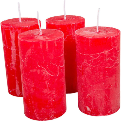 Rusztikus henger gyertya 50x90mm piros 4db/csom (db ár)