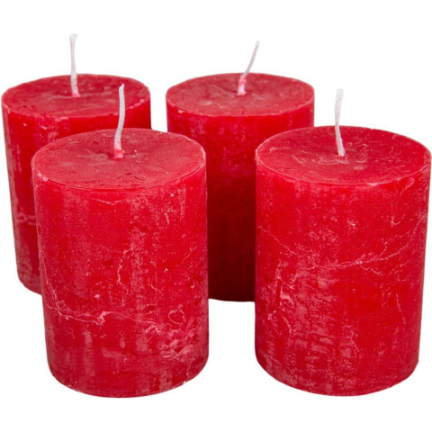 Rusztikus henger gyertya 60x80mm piros 4db/csom (db ár)