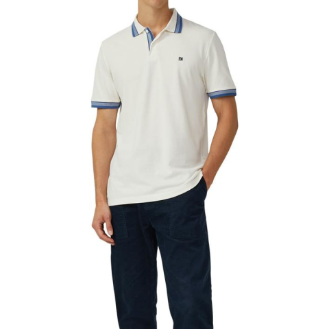Férfi piqué póló vékony gallérral, elején diszkrét márkajelöléssel. Megjelenített Szín Fehér
