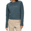 65% cotton, 35% polyester anyagból készült S.Oliver női kerek nyakú pulóver, elején óriási S.Oliver márkalogóval díszítve