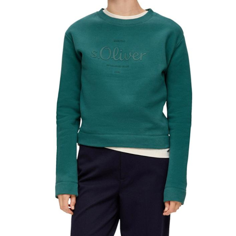 65% cotton, 35% polyester anyagból készült S.Oliver női kerek nyakú pulóver, elején óriási S.Oliver márkalogóval díszítve. Megjelenített Szín Petrol