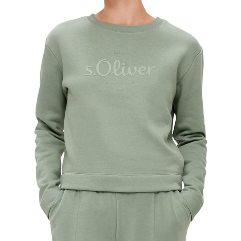 65% cotton, 35% polyester anyagból készült S.Oliver női kerek nyakú pulóver, elején óriási S.Oliver márkalogóval díszítve. Megjelenített Szín Sage Green