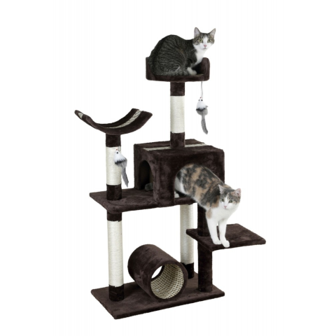 • ággyal, rejtekhellyel, csővel és búvóhellyel • alap mérete: 59.5 x 36 x 2 cm • extra erős alap • odú: 35 x 35 x 25 cm • rejtekhely: 30 x 28.5 cm • ágy: átmérő 30 cm • magasság: 122 cm • oszlop: o 7.5 cm • sisalal borított kaparófa Tulajdonságok