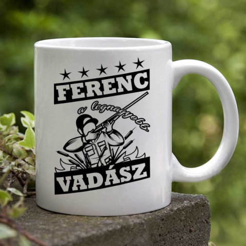 Neves bögre vadászoknak, legnagyobb vadász. Névre szóló bögre a legnagyobb vadásznak születésnapra, névnapra. Bármilyen névvel rendelhető bögre vadászoknak. Egyedi bögre saját névvel, ezáltal válik személyessé, egyedivé az ajándékod. Rendelj hozzá díszdob