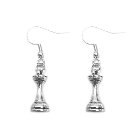Sakkfigura bástya fülbevaló, választható arany vagy ezüst színű akasztóval