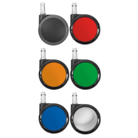Élénkítse fel Salli nyeregszékét színes kerekekkel. A Salli Soft Standard Castor kerekek színválasztékának köszönhetően stílusos kiegészítővé varázsolhatja Salli nyeregszékét irodájához vagy rendelőjéhez illően. A puha standard kerekek átmérője 65 mm.