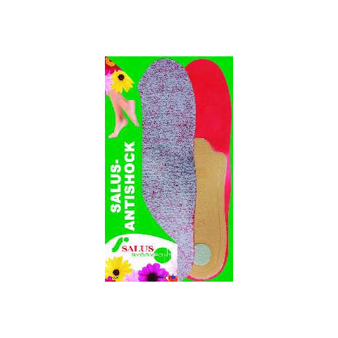 SALUS Antishock frottír lúdtalpbetét A talpbetét speciális rezgéscsillapító funkcióval rendelkezik, mely jelentős mértékben nyeli el az izületeket ért ütődéseket. A nyomás-ellennyomás hatásának köszönhetően a hab alsórész minden lépésnél a levegő több ir