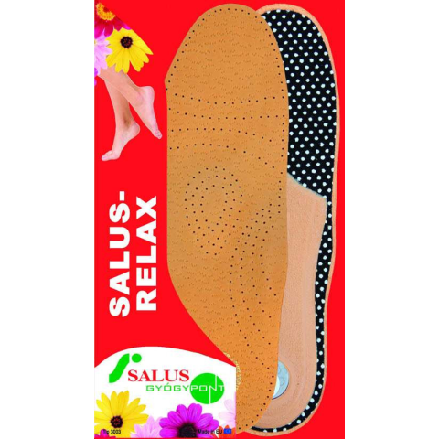 Salus Relax bőr gyógytalpbetét haránt és lúdtalp emeléssel Valódi bőr gyógytalpbetét, haránt-, és lúdtalpemeléssel, rugalmas sarokággyal. A talpbetét közepén lévő párna megemeli a harántot, ezáltal leveszi a terhelést a haránt csontozatról. Salus Rela