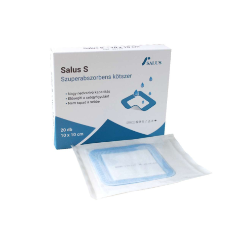 Salus S szuperabszorbens steril kötszer 10x10 cm A Salus S kötszer egy egyszer használatos és háromrétegű: sebfedő, felszívó és vízzáró külső rétegből áll. E kötszernek kitűnő váladékkezelő tulajdonsága van, amennyiben a felszívó réteg egy SAP (Super Ab