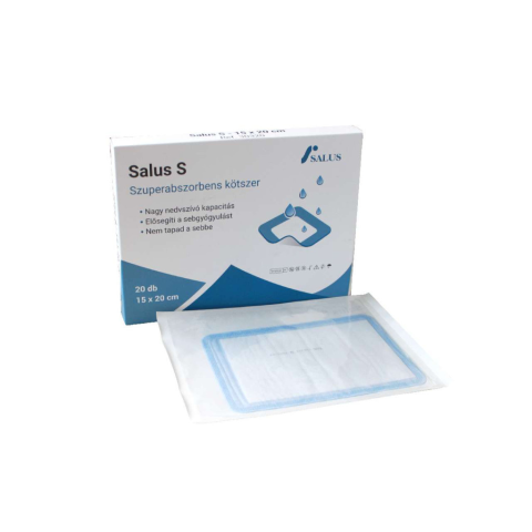 Salus S szuperabszorbens steril kötszer 15x20 cm A Salus S kötszer egy egyszer használatos és háromrétegű: sebfedő, felszívó és vízzáró külső rétegből áll. E kötszernek kitűnő váladékkezelő tulajdonsága van, amennyiben a felszívó réteg egy SAP (Super Abs