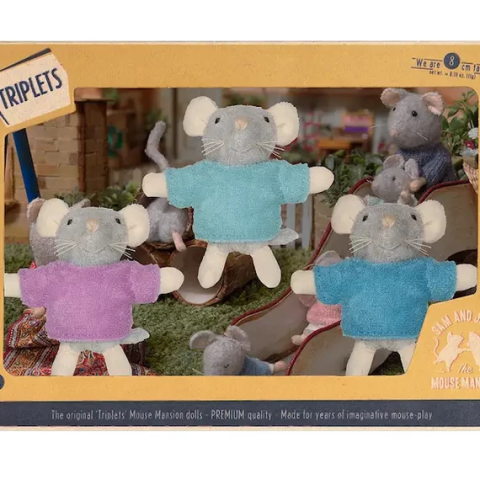 Sam & Julia hármasiker egér szett – Mouse Mansion - Elbűvölő hármasiker egér babák az Egérvilla legfiatalabb lakói