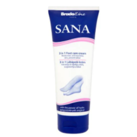 Termék jellemzői: - A növényi hatóanyagokban gazdag Sana 3 in 1 lábápoló krém a láb mindennapos ápolására ajánlott. - A benne lévő urea és tápláló hatóanyagok segítségével a láb száraz bőre hidratált és puha lesz. - Csökkenti az izzadást, szagtalanít. - T