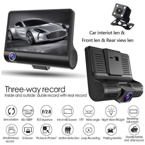 Sanlu 3 kamerás útvonalrögzítő Három kamerája van a készüléknek igy ,mindent rögzíthet vele. Az elülső kamera Full HD 1080P, a hátsó kamera és a belső 720p felbontású Leírás:Felbontás: 1080FHD (1920 * 1080) / 720P / VGACiklikus felvétel: ki / 1 perc / 2 perc / 3 percEnhanced Night Vision (HDR): be / kiExpozíció: -3 / -2 / -1 / 0/1/2/3Mozgásérzékelés: be / kiFelvétel: be / kiDátum bélyegző: be / kiLicense Plate: be / kiGravitációs érzékelés: ki / magas / st