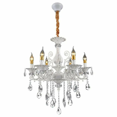 1 kép SANSSOUCI Csillár 6xE14 Kristály és Fém – Klasszikus Design, Állítható Magasság, Ezüstfehér