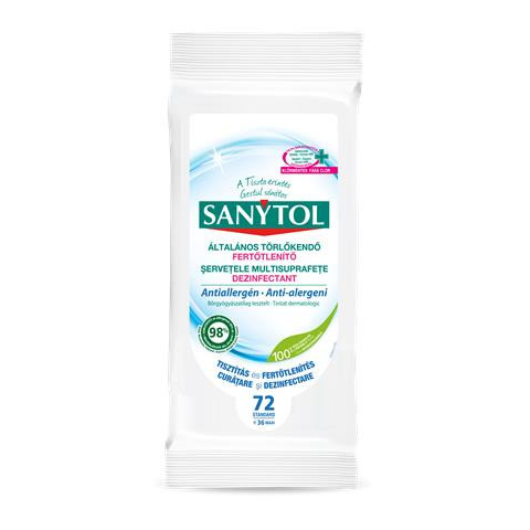 1 kép SANYTOL Fertőtlenítő törlőkendő, 36 db maxi/72 db standard, SANYTOL, antiallergén