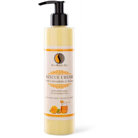 A Sara Beauty Spa - Körömvirág & Méz masszázs krém gyógynövénykivonatokban gazdag intenzív bőrpuhító krém kiszáradt, berepedezett, érzékeny bőrre. Extra száraz bőrre is javasolt, amelyet tökéletesen hidratál, táplál és nyugtat. A körömvirág, akácméz, kókuszolaj, kakaóvaj, lanolin, ricinusolaj és E-vitamin tartalmának köszönhetően tökéletesen puhává és selymessé varázsolja a bőrt. Berepedt körömágy, kiszáradt könyök, hámló tenyér, száraz lá