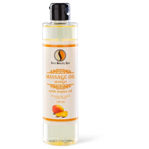 A Sara Beauty Spa mangó illatú növényi masszázs olaj értékes természetes anyagokat és növényi kivonatokat tartalmaz. Az argán olaj és az E-vitamin ápolja és puhítja a bőrt.