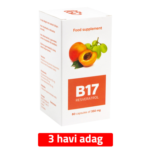 Sárgabarackmag por (B17)-rezveratrol étrend-kiegészítő kapszula - 90 db = 90 napi adag A termék Magyarországon kizárólag itt kapható! A kapszula két fő összetevője (sárgabarack mag por + rezveratrol) ilyen kombinációja nem található meg egy termékben