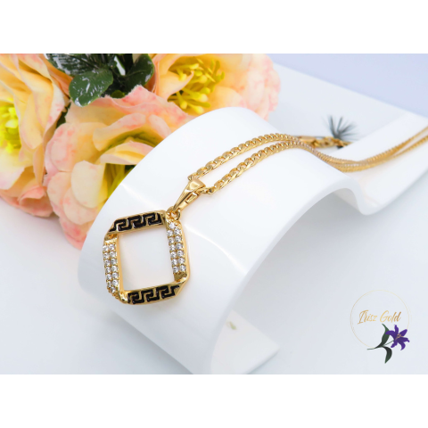 Gold Filled görög mutivummal díszített medálos nyaklánc apró cirkon kövekkel Szin: 18K Méret. 50 cm /2mm Medál:22x20mm