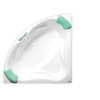 Sarokkád akrilátból. Bal és jobb oldali tájolás is. A kád űrtartalma 280 liter. Csomagolás fogantyú, lábak és fejtámla nélkül.