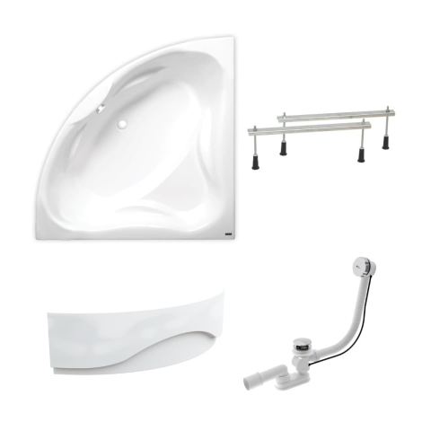 Akrilból készült sarokkád, anyagvastagság 3,2 mm. A kád megnevezése - bal és jobb tájolás. A kád térfogata 280 liter. Szifonnal, lábakkal, elülső és oldalsó panellel együtt.
