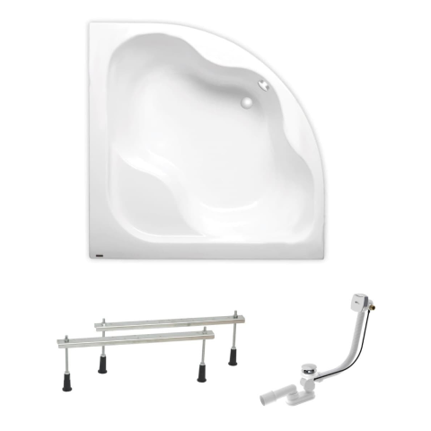 Akrilból készült sarokkád, anyagvastagság 5 mm. A kád megnevezése - bal és jobb tájolás. A kád térfogata 275 liter. Szifonnal túlfolyóval és lábakkal együtt.