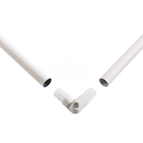 Saroktoldó elem vagy toldócsukló 19 mm-es fehér fém karnisokhoz A karnisrudak belsejébe helyezve, lehetővé teszi azok összetoldását azokban az esetekben is, amikor a karnisok egymással bizonyos fokú szöget zárnak be. (amikor az ablakok nem egymással egy