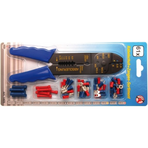 60 db különbő kialakítású, színkódolt, szigetelt kábelsaruval Fogó hossza: 200 mm