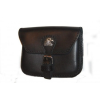 Valódi bőr övtáska, fém sasfejjel díszítve. Hátulján 2 db bőr bújtató az övhöz való felfogatáshoz. Kézzel készült, magyar bőrdíszműves termék. Külső mérete: 16,5 x 12 x 3 cm. A sasfej minta eltérő lehet!