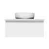 Fehér színű, matt felületű, mosdókagyló alatti függő fürdőszobaszekrény, mérete 78x30x44,8 cm. Felület fóliázott kivitelben.