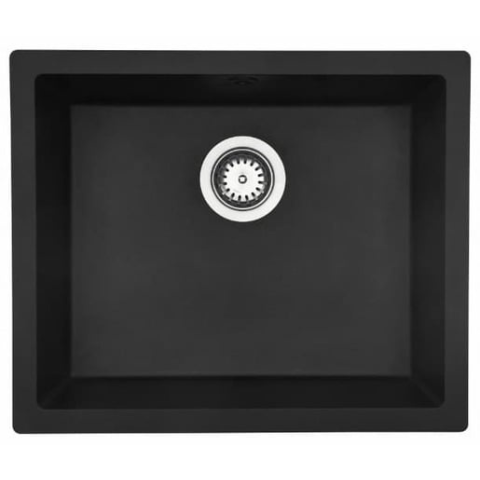 Fekete gránit mosogató, munkalap alá építhető, méretek 56,5x46,6 cm, mélység 18 cm. 60 cm széles szekrénybe beépíthető. 5 ÉV GARANCIA, 10 ÉV alkatrészellátás.