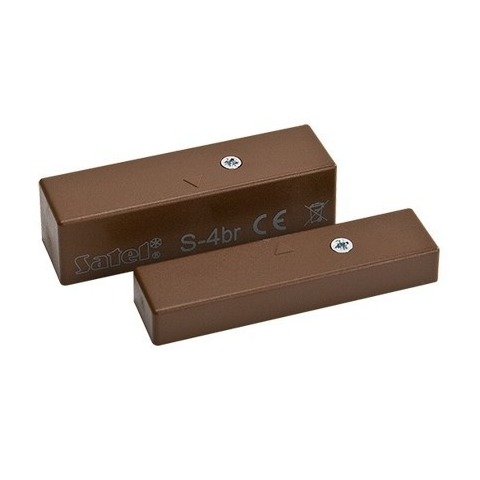 Satel S-4 BR Mágneses nyitásérzékelő, felületre szerelhető, szabotázs áramkörrelTermékcsalád: Univerzális Szerelés: felületre Rendszer: vezetékes Biztonsági szint: normál Kapcsolási távolság: 20 mm Védettség: beltéri Anyag: műanyag Szín: barna Minősít