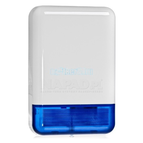 - SATEL kültéri piezzo hang-fényjelző.- Nagy ellanállású polikarbonát anyag.- Piezzo zümmer.- Kék.- 5W/12V fényjelző izzó.- 3 állítható hang. - 2 vezérlő bemenet.- Tamper védelem kinyitás és leszakítás ellen.- Méretei: 300x200x90 mm.- Tápfeszültség: 12VDC.