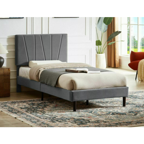 1 kép Savana Velvet Bársony Egyszemélyes Ágy Szürke Bordázott Fejvéggel
