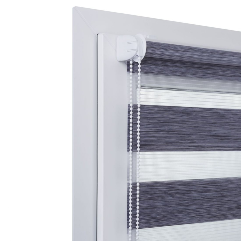 A vászon anyag sötétebb és átlátszó csíkjai a gyöngylánc mozgatásával váltakoznak, így szabályozhatjuk, hogy mennyi fényt engedünk be.