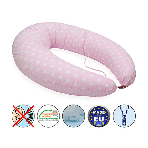 A Scamp XXL formázott kifli alakú szoptatós párna több funkcióval bír. Hatékony segítséget nyújt a várandósság idején, lehetővé teszi, hogy a legkényelmesebb pozíciót tudja felvenni a kismama: alvásnál, pihenésnél megtámasztja a derekat, megemeli a combot