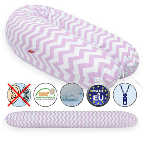 Scamp szoptatós párna univerzális pamut ZigZag Pink White SZPE233 A Scamp univerzális párna többféle funkcióval bír. Használatát ajánljuk várandósoknak, szoptatós anyáknak és a babáknak, nagyobb gyermekeknek. A terhesség a nõ felejthetetlen, leggyönyö
